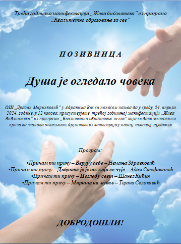 У петак, 23. 05. 2025. године, у нашој школи је одржана четврта по реду годишња манифестација „Жива библиотека“ чији је овогодишњи мото био „Само се срцем добро види“.